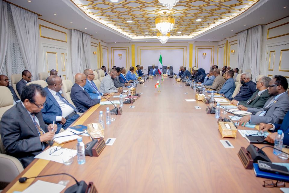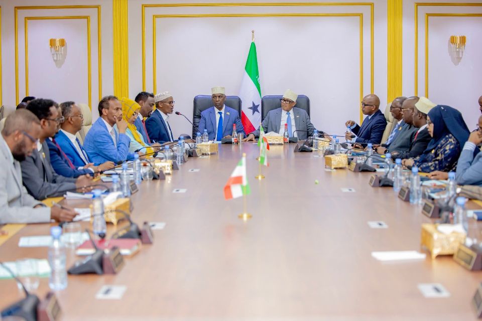 Fadhigii 40-aad ee Shirka Golaha Wasiirrada Jammhuuriyadda Somaliland oo uu Shir-gudoominayey Madaxweynaha Jamhuuriyadda Somaliland Mudane Cabdiraxmaan Maxamed Cabdilaahi (Cirro), isla markaana uu wehelinayey Madaxweyne ku-xigeenka Jamhuuriyadda Somaliland Mudane Maxamed Cali Aw Cabdi ayaa maanta ka qabsoomay Qasriga Madaxtooyada Somaliland.